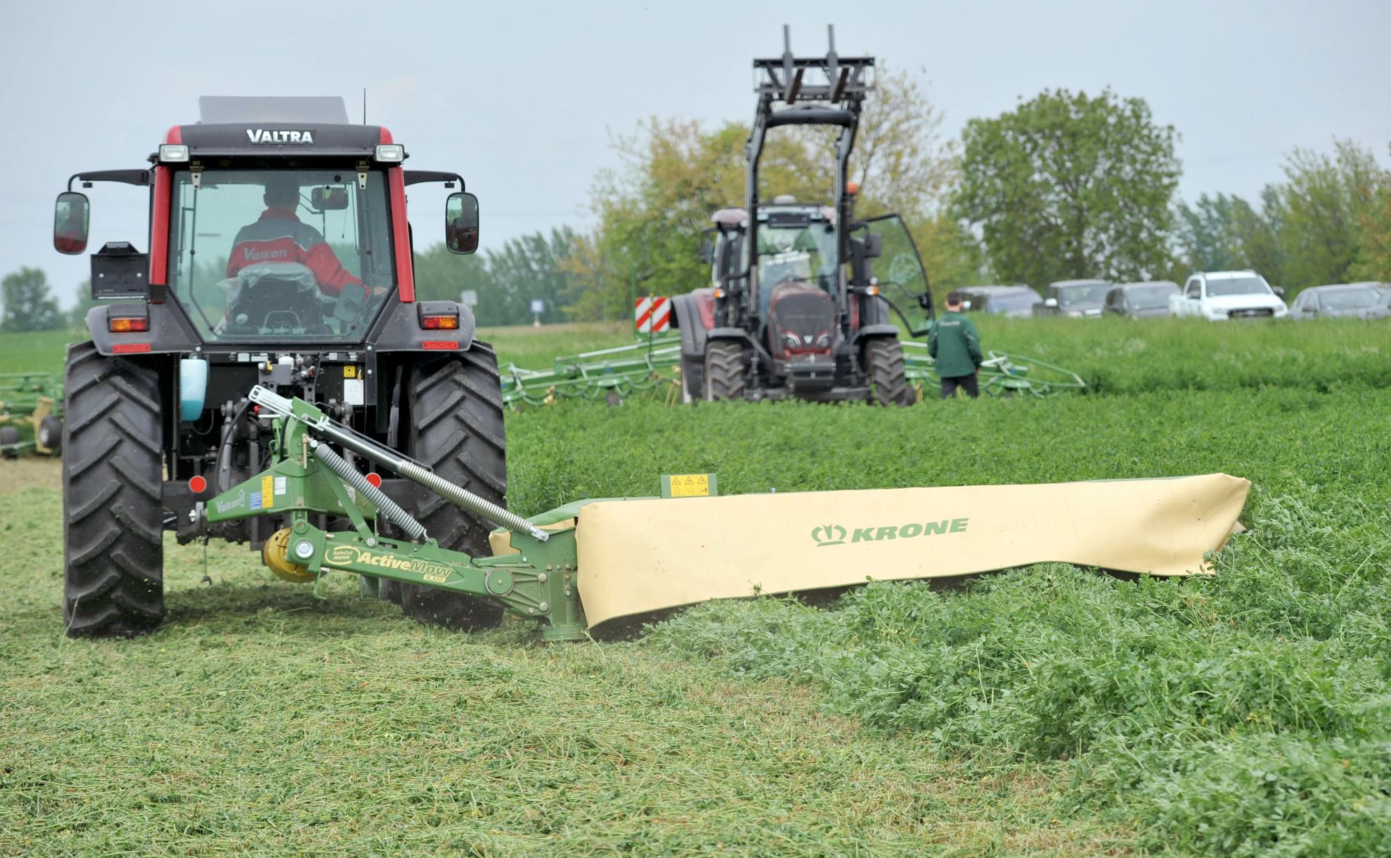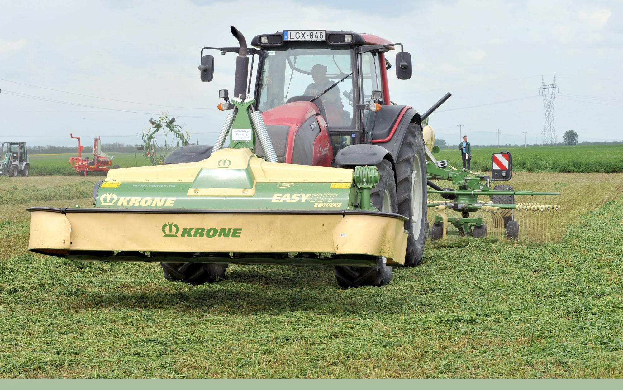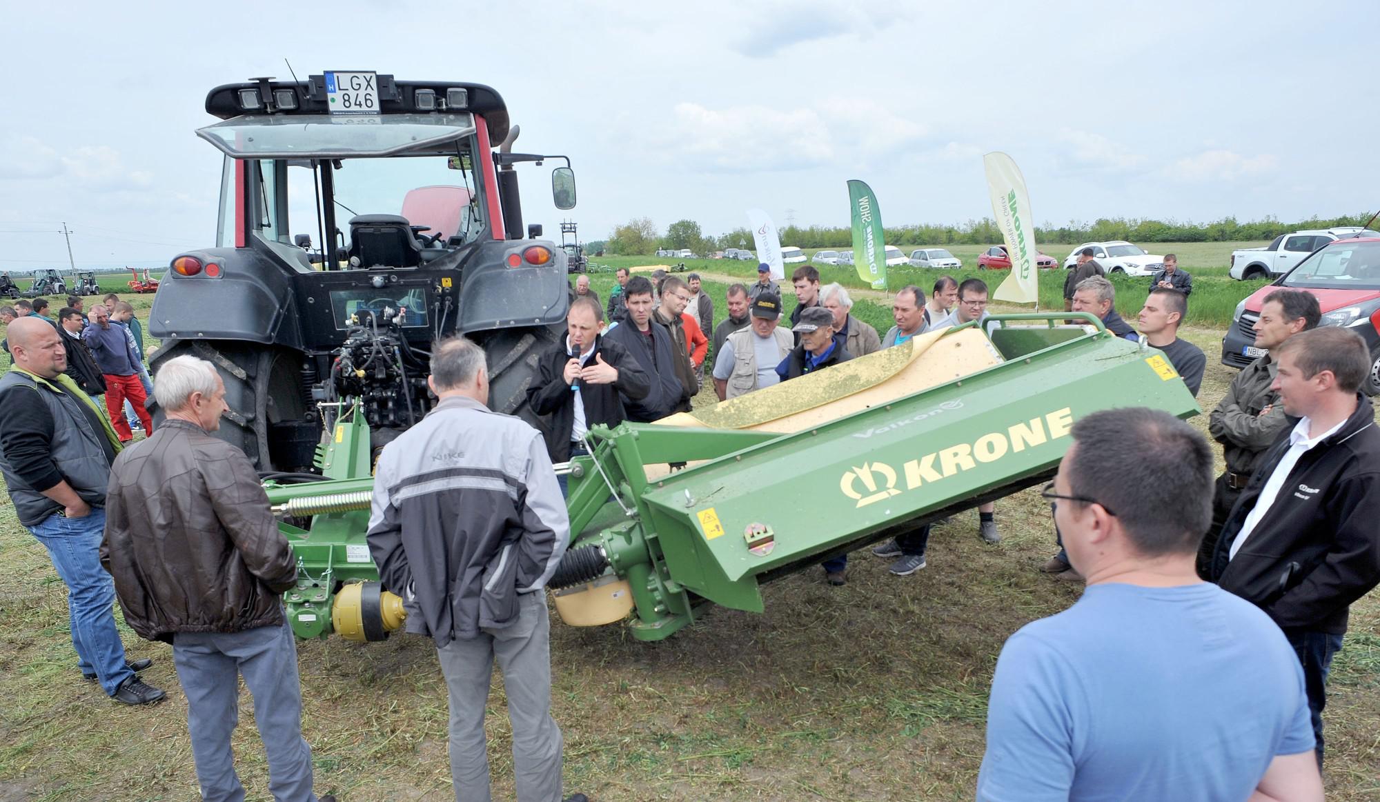 Több száz gazda részvételével zajlik az idei Krone-show, amelyet immár negyedik alkalommal rendez meg a kecskeméti székhelyű Valkon Kft. május 3–6. között. A szálastakarmány-betakarító gépek gyártására specializálódott német Krone cég termékeit Dévaványa, Mezőcsát, Marcaltő és Iregszemcse határában tekinthették meg működés közben az érdeklődők.
